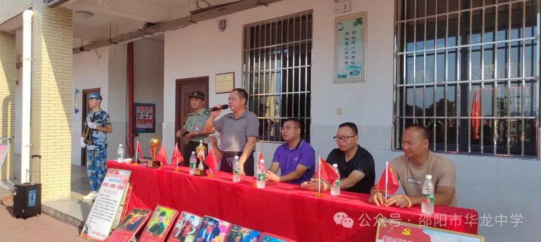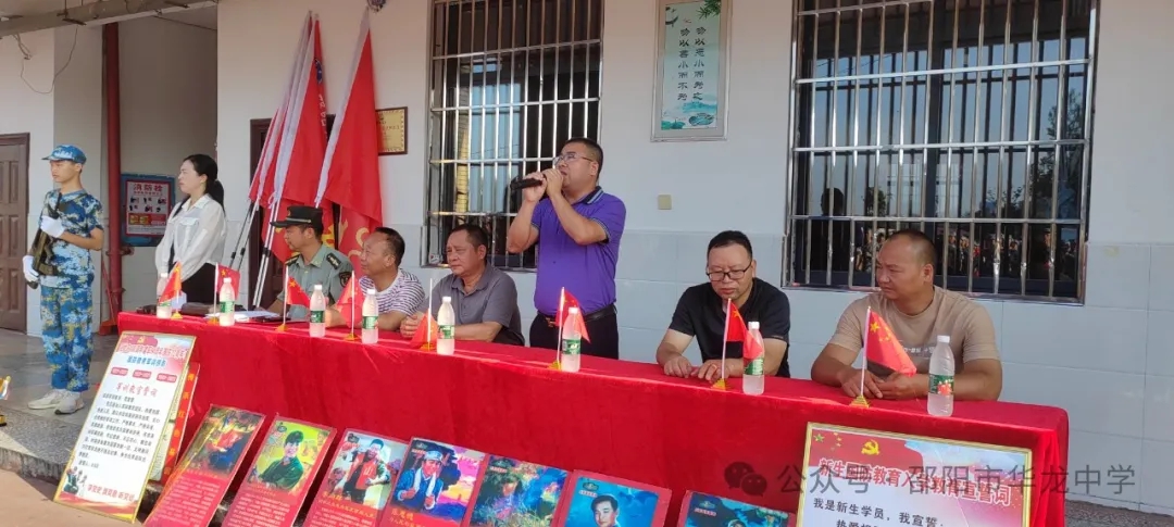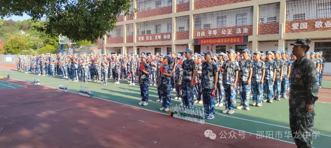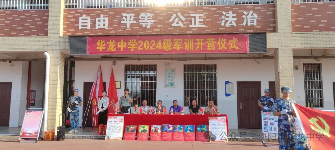 學(xué)校彭書(shū)記宣布華龍中學(xué)2024級(jí)高一新生軍訓(xùn)正式開(kāi)始。
