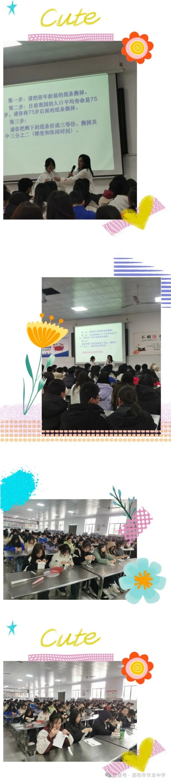 賀老師以猜謎語(yǔ)的形式引出時(shí)間是珍貴的,然后帶著學(xué)生一起做撕紙游戲,在做游戲的過(guò)程中領(lǐng)悟到生命是有限的,我們要合理利用時(shí)間才能讓生活如詩(shī)如畫。